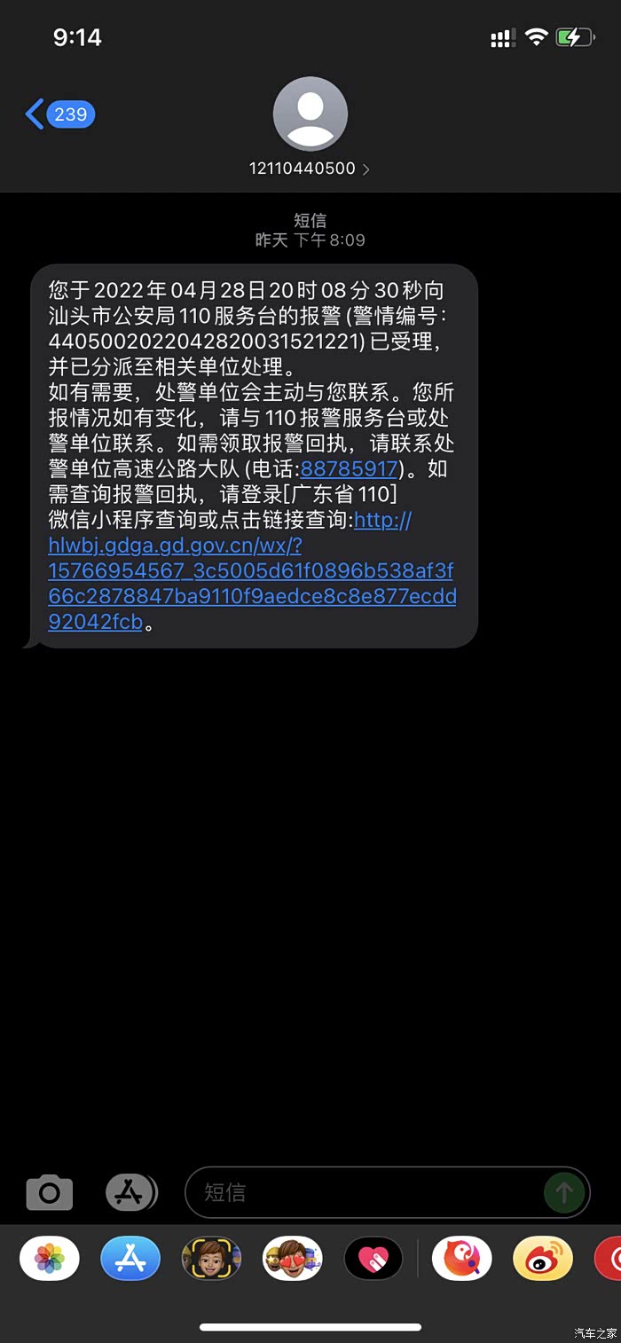 我们赶紧离开车辆,冲到右侧路肩。期间我们不停联系比亚迪救援,交警拖车,以及报了警,高速全黑,一辆辆车呼啸而过,情况危急,我们打开手机灯作提示作用,担心车辆造成二次事故。很快警察和交警赶到现场解救我们,但等待过程仍觉得无助而漫长。