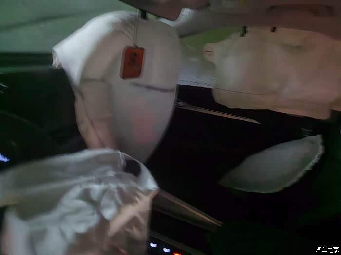 全车气囊打开,因为救车反打方向,手被气囊炸伤擦破了皮,安全带拉紧了身体,没有往气囊上扑,有效保护了成员。