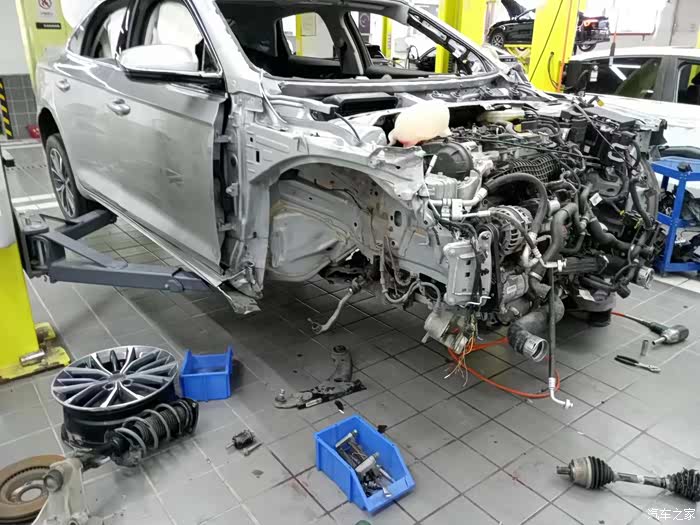 师傅说纵梁抗住了所有撞击力,连减震塔顶都没坏,底盘件全部拆掉重换,等配件装好后做四轮定位和清洗后交车。