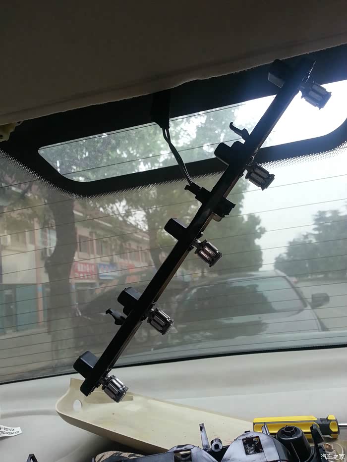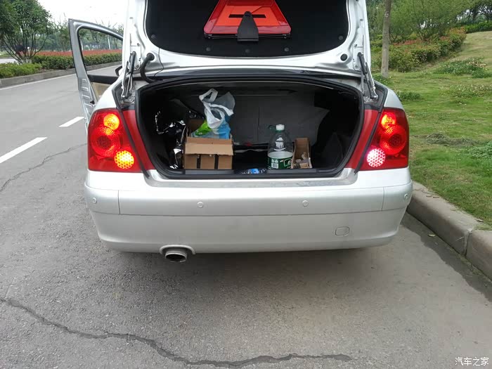 一个人操作,所以拉紧手刹,弄工具箱和矿泉水压住刹车,打开示宽灯、雾灯、倒车灯,双闪灯