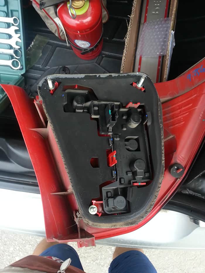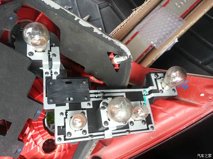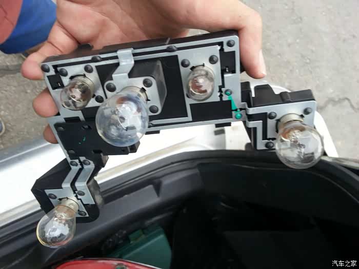 拿灯罩前先把插线拔掉,我忘记拍图了,这是拆掉的右后尾灯总成