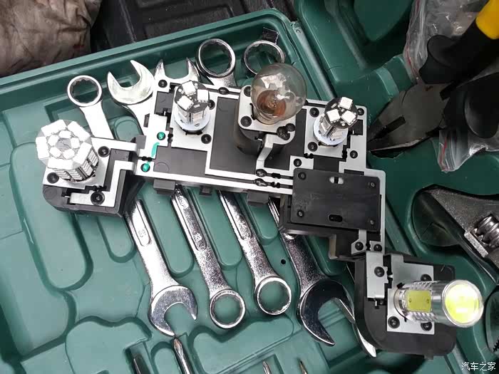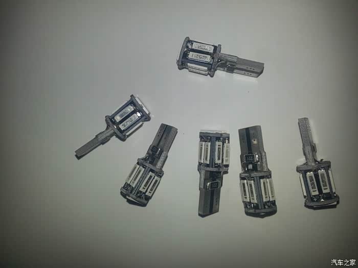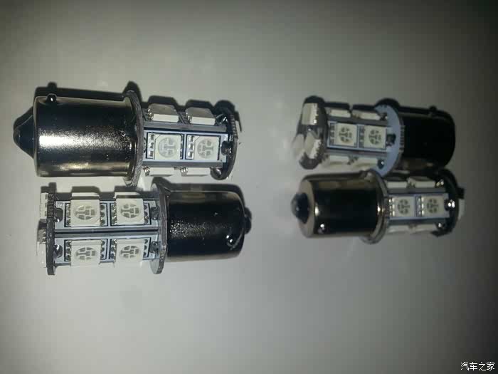 学习了N多帖子之后在一家专门卖标致LED灯泡的店铺买了一堆灯泡,包括6个高位刹车灯,2个刹车灯,4个示宽灯(无极性),1个倒车灯,其余转向灯和雾灯用卤素的,一个是不会频闪一个是卤素穿透力强。
