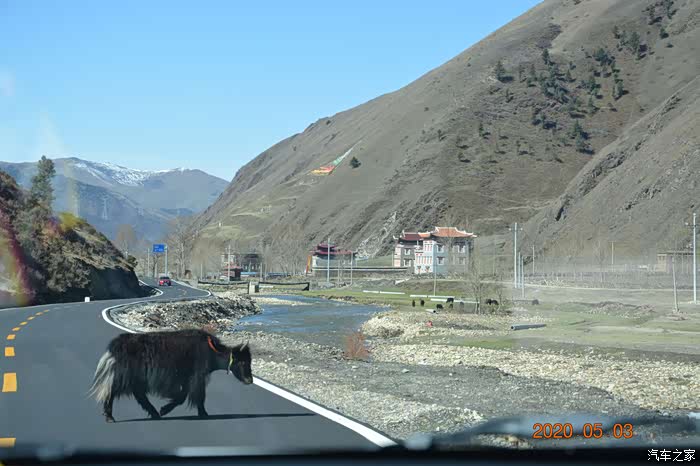 在翻折多山时,我们从一个小路拐到一个村级公路上,没有人也没有车,体会一下当地的民族风情,这是一个山谷,通往江巴村的路上,可以通达康定机场,本来我是把此条路线做为备份路线的,出新都桥时看到路标,就拐进来看看。在一处叫贡巴村的地方,我们停车下来走走,山谷很安静,路两侧很远有人家,但没看到人。两匹散放的俊马,时不时发出在电影里才听到的厉声嘶鸣,在嘶鸣间歇,仿佛能听到自己的心跳,安静的让人有些不安