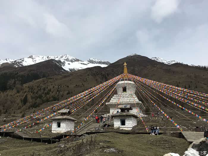 沟内的一处景点,这个白塔一周被雪山环绕,肃穆庄重,看别人虔诚的转塔,我们也围着转了3圈,边转边许愿,目前有几个愿望已经实现了,剩余的几个正在实现过程中