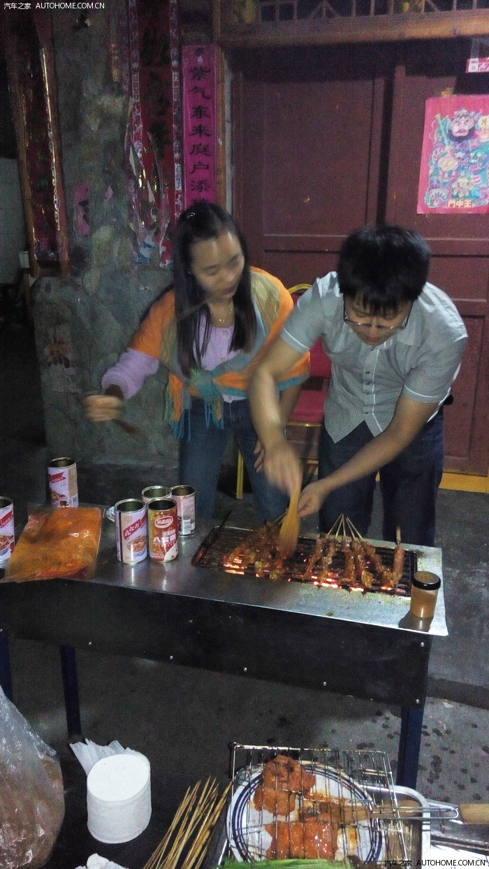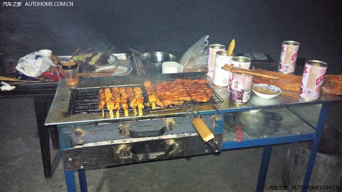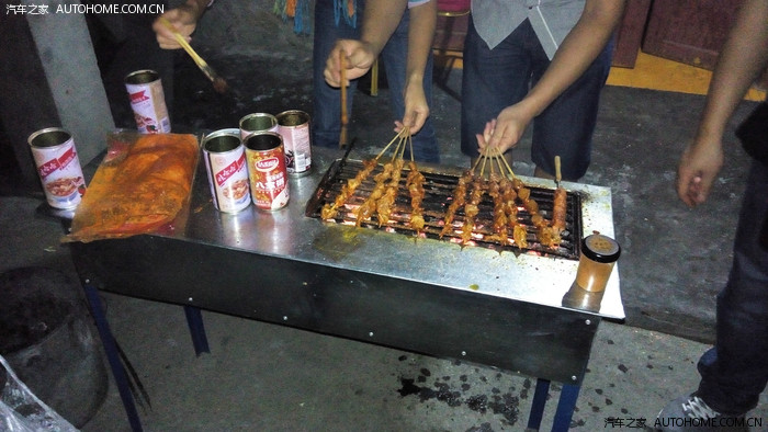 晚上宵夜,这是老板自己的架子和木炭。本来我们也自己带了BBQ架子和机制木炭。老板是当地人,很实在,直接说用他的,木炭管够,还送给我们很多自己种的韭菜和木耳,土豆。