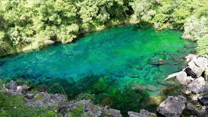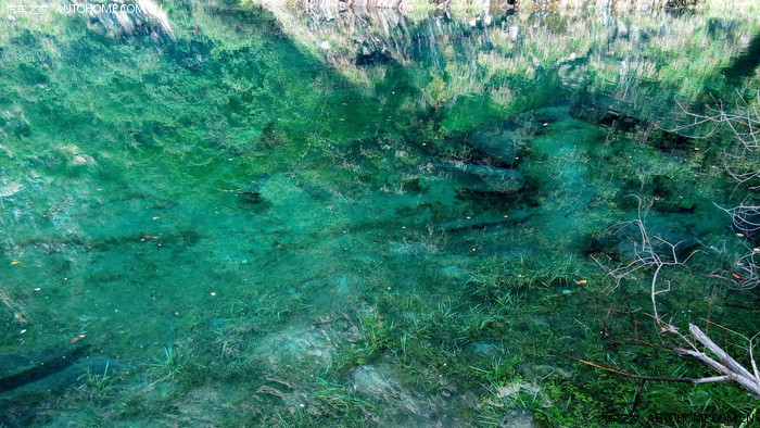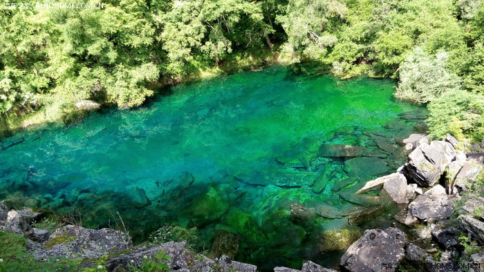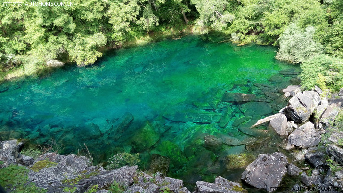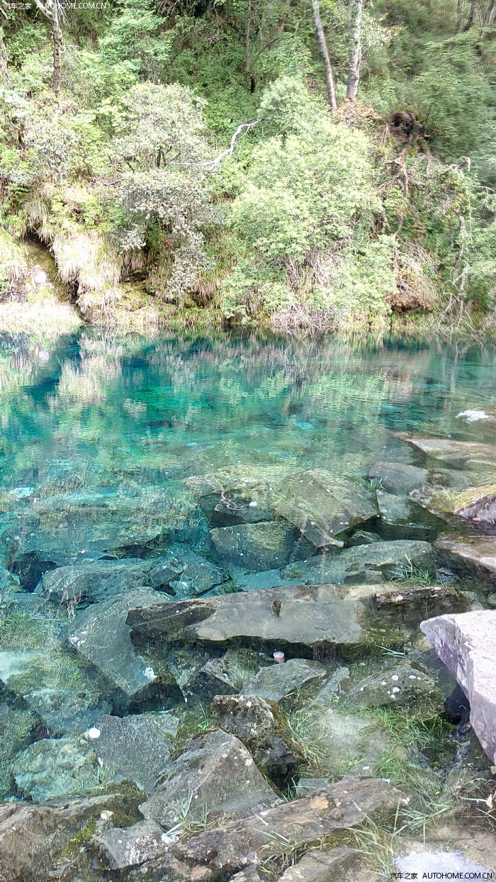 这就是五彩池了,现在看不出那么多颜色,要等秋天,周围的树叶红了,这时候池中的倒影加上水色就有很多颜色了