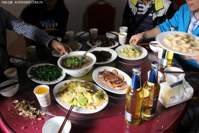 老板姓周,很厚道,标间120块,住两个人,包早饭。晚上和中餐我们人多,和老版谈下来15块一个人。而且菜还不错的。想想在成都吃碗面都要10块了,55555