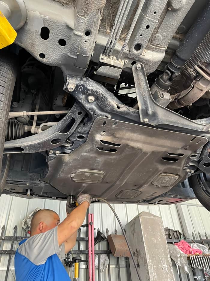 曾经在仙居跟大G一起豁水的时候把原装发动机保护垫给豁豁了,换了个铝镁合金的,看起来还不错。