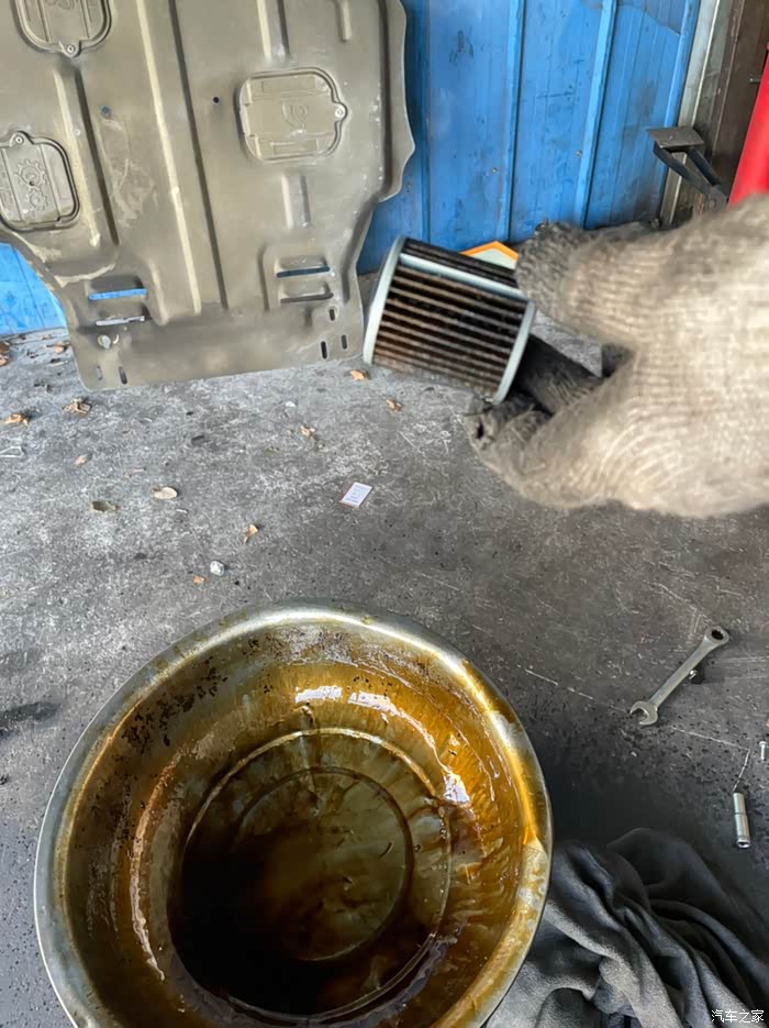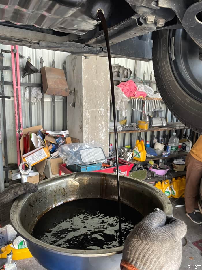 虽然上一次加的是全合成机油,但是经过一万多公里的豁豁也很脏了。