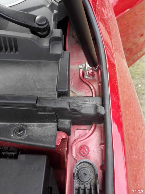 红圈的位置,有加强筋,但是装上后,无法关闭引擎盖。