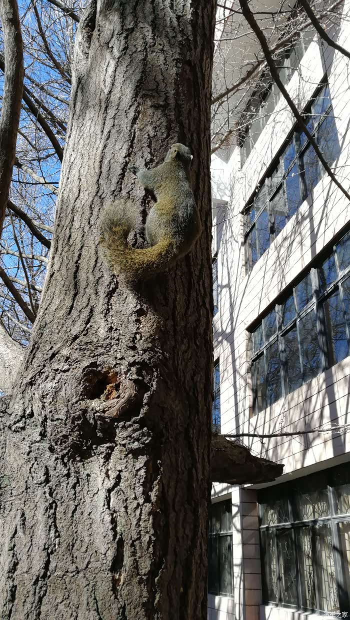 校园内的银杏大道偶遇小松鼠