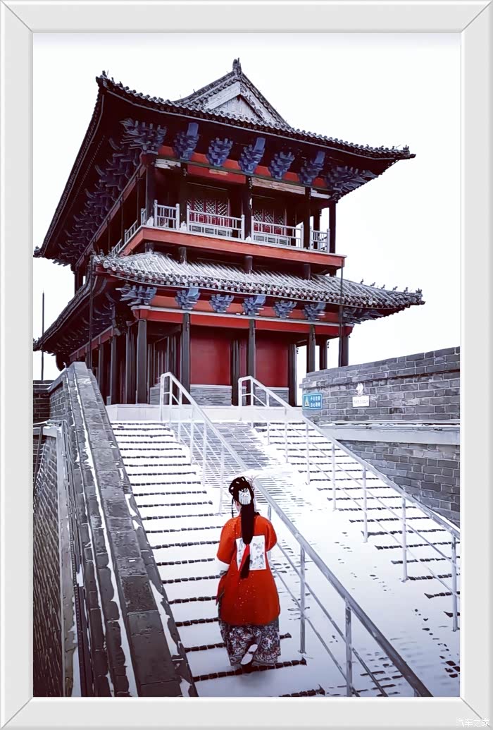 佳人踏雪登古楼