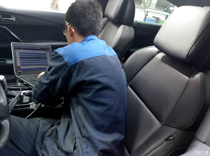 最开始咨询了我是什么问题:前排两车门的门把手同时失效,无法解锁/上锁,关键是在同时失效,很蹊跷,于是怀疑不是硬件的问题。另外,主驾位的音箱偶会不响,因为几率小,问题没发在师傅面前重现,所以放弃修音箱。师傅也判断是车载电脑的问题,于是开始插上电脑,各种检测,大概40分钟过后,各种读取/写入数据,删除故障。都没能解决问题,这个年轻的小师傅也感觉自己解决不到问题,于是他去叫了一下店里的另一个年龄大概35 的男的来,哈哈,我猜应该是CTO来了,这师傅一来,15多分钟左右,问题Bingo(解决)了。