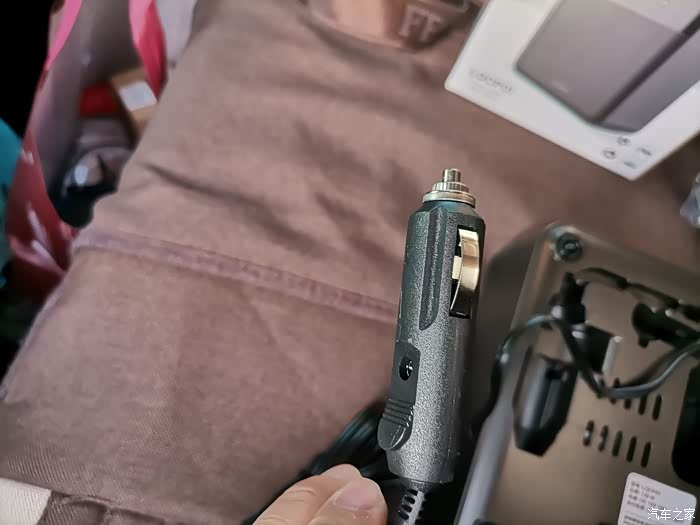 本次评测的车载充气泵品牌为领臣,一款非常小巧的充气泵,可以预设胎压进行打气,充满自动停止。打气嘴是按压气嘴,使用最为方便。随机附带一个10A的保险,可以说厂家很是用心,还有三个各种各样的气嘴。