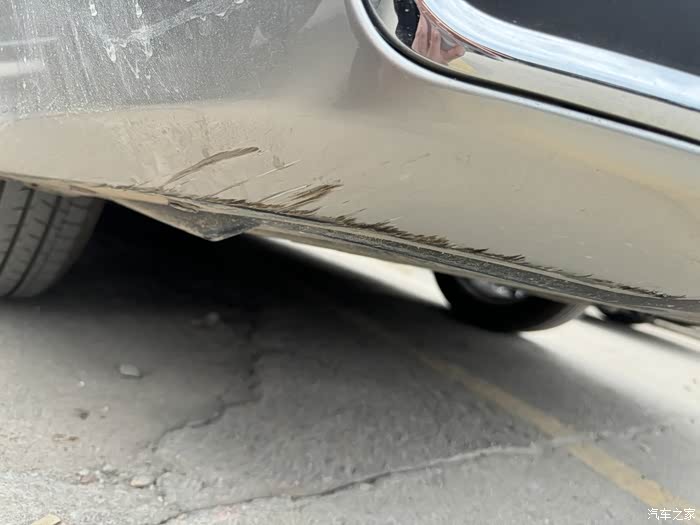 问题描述:当时就是出去玩,晚上10点多回来时,本来是不经过这条路的,但是因为要去买一个东西,所以就去了这一条路,本来这条路也经常走,但是印象中是没有这一个维修的路况,所以就50多码的速度就开过去了,晚上也没有太注意观察地面,一下子就冲过去了,当时是听到一个响声,但自己就是觉得是底盘刮了一下,也没有太在意,也没有停下来检查就直接开走了,后面回到家停好车也没有去观察了,太晚了也看不清什么就没有管了,第二天我去开车时,我就把车子前前后后都看了一下,看了前杠没事就觉得没有问题了,因为雷克萨斯es前杠是很低的,底盘那种马路应该也刮不破,最多磨损,当我看到后面的时候,才发现原来是刮破后面了,但是这个你不低头看也确实看不明显,但是心里总是有点不舒服,这两个图片也是第二天才拍的了,当天晚上没有拍上磕碰现场的图片,也没有报交警,所以找路政单位基本不行了,所以想着还是自己去喷一下漆,顺便检查一下底盘。