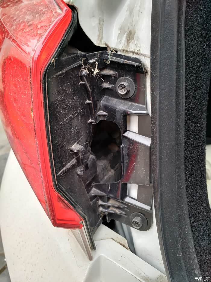 拆内侧的时候注意,4颗螺丝固定,靠中间被后饰板压住了,需要把饰板的两个螺丝拧下来,把饰板翘起来一点方可拿出内侧灯。