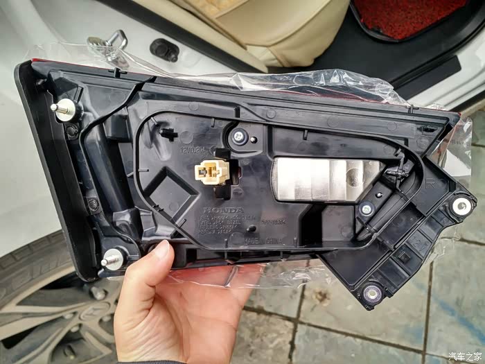 下面两个洞是倒车灯和转向灯,原车的拧下来直接插进去拧一下就行,请看下图。