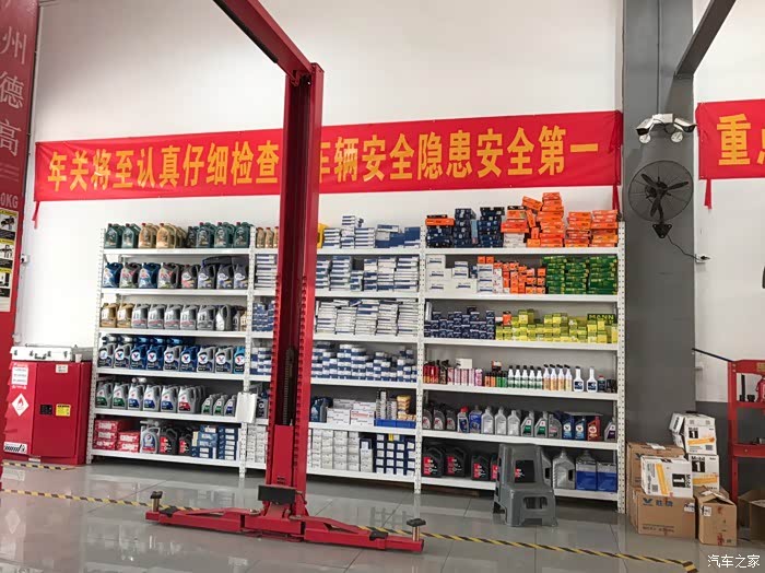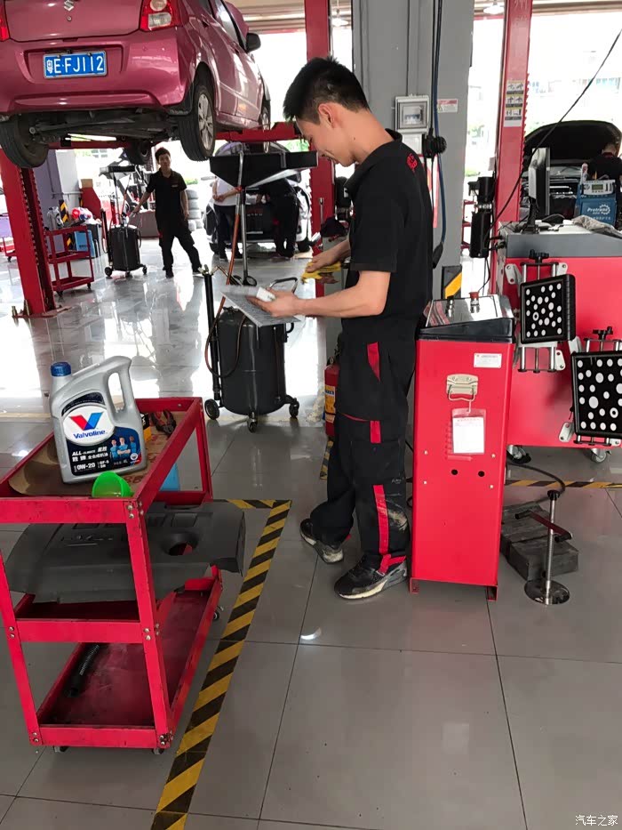 师傅挺认真的,全车都基本检查了,防冻液刹车油雨刮水电池底盘轮胎刹车都检查了,还拿气枪对着机舱吹了很久,大大的赞