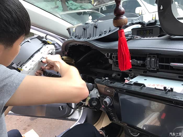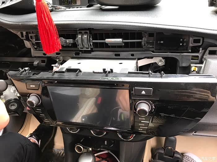 中控也拆,拆开后很多线束,但没有扎好,估计是当初帮我装这个中控屏的师傅随便塞,所以可能有些异响。现在这个师傅也挺负责,主动帮我整理好里面的线束,全部扎紧粘好