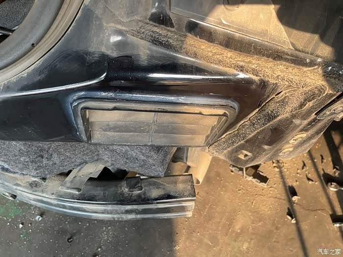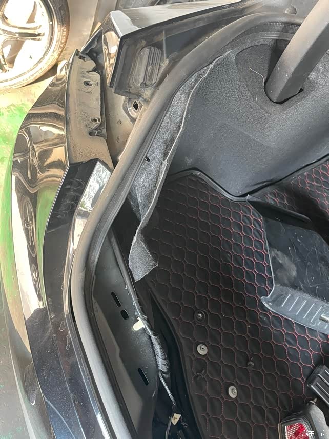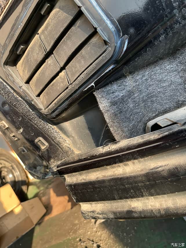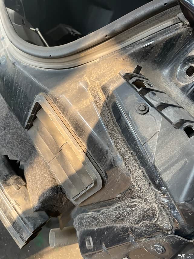 修理工拆下来后,果断自己上阵,打玻璃胶,这里要注意,玻璃胶一定买品牌的,因为是塑料跟铁固定,差一点的胶,应该很快就起皮。玻璃胶打两遍,第一遍打完,最少等半个小时,待有点干之后,再打一遍。有条件的24小时后打第二遍,我是没时间,等了15分钟左右,略微硬化后就打了第二遍,看看我打的效果如何