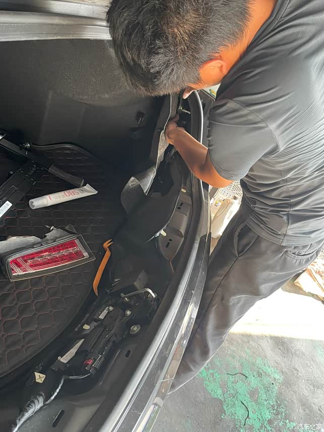 拆后保要一圈螺丝全拧下来,得10几个,注意两点:一是要拆尾灯,二是保险杠有线,倒车雷达等,注意不要把线拉断了。
