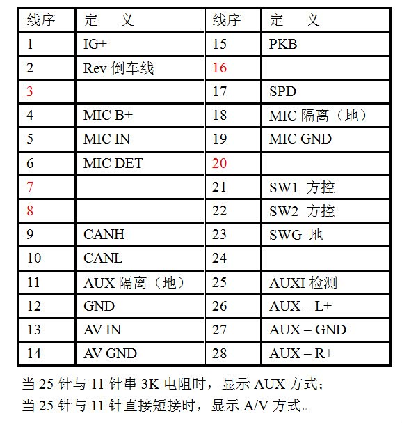 车机的接线难点主要集中在28P插头上,知道了它各针脚的定义,一切都简单了。