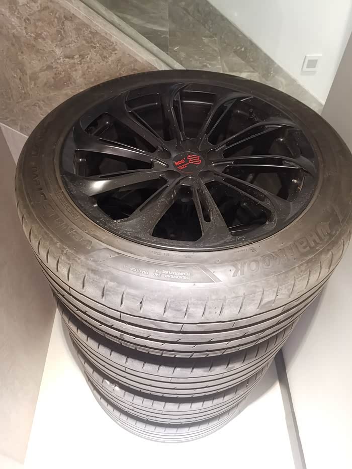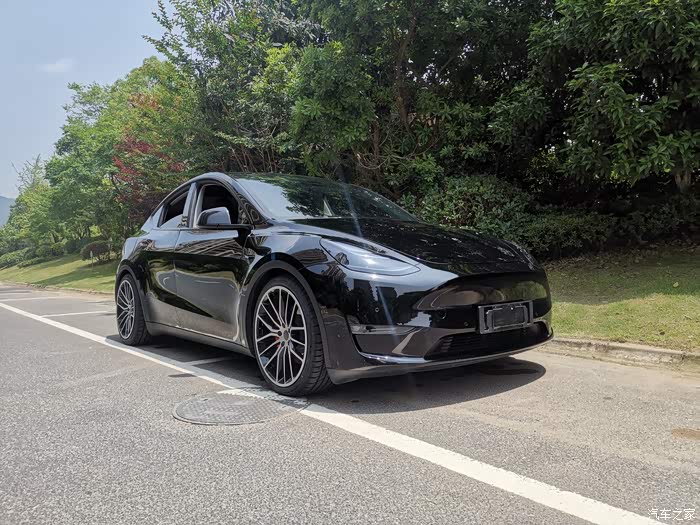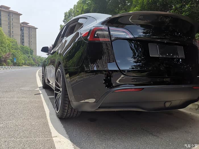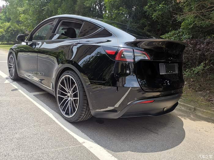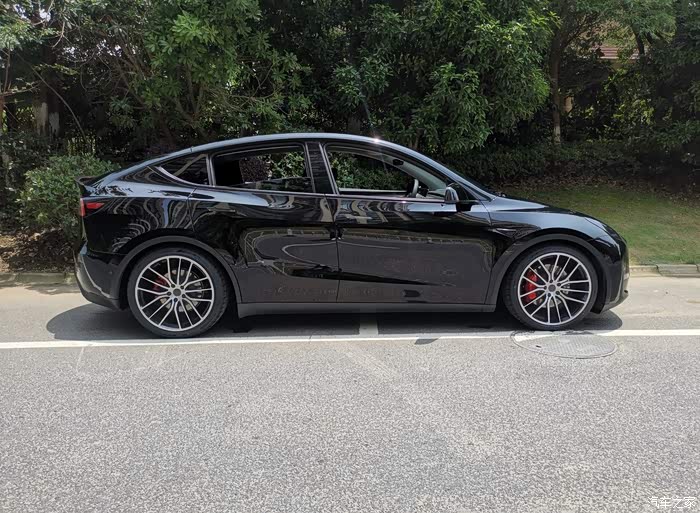 体验了一下这套21寸轮毂,来谈谈感受:外观就不要多说了,能耗确实有增加,百公里大概增加3~4度左右,因为车轮重了,而且后轮加宽了2号,原车19寸轮毂12.8公斤一个,轮胎11.6公斤一条,改装后前轮12.5公斤一个,轮胎13,增加了1公斤一个,后轮增加3公斤一个,簧下增重明显,当然也就更费电了,舒适性也有所降低,扁平比更低后,路感更强,地面对方向盘和底盘的反馈也更直接,有利有弊吧,改装就是这样,有舍有得,看自己取舍,反正19还在,不行再换回来,哈哈哈!