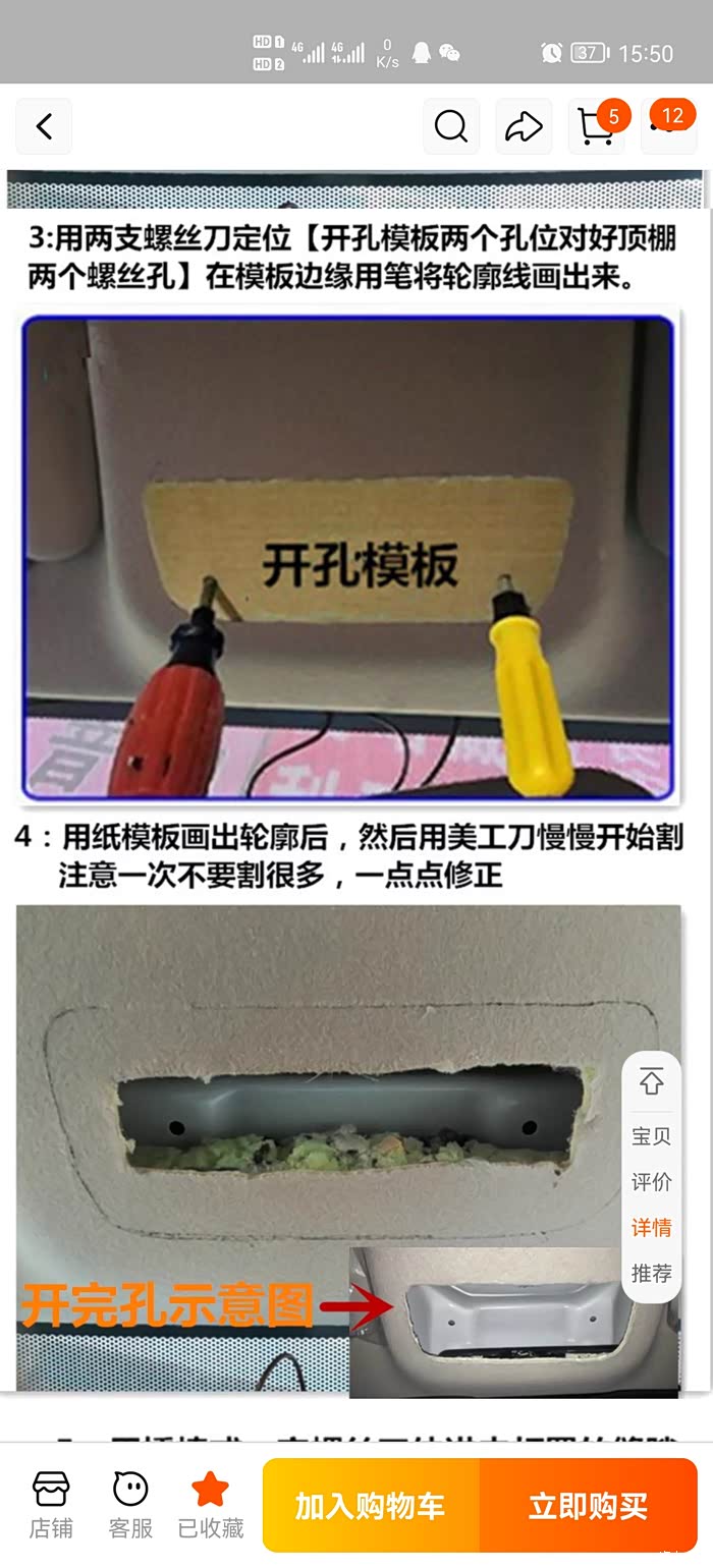 这是我挖完的孔,这个褶皱这里是因为挖的这个孔小了点,拆前置天线的话要用套筒扳手往里才能拧下来,所以这里挤了一下,不过最终装完阅读灯效果也还行。
