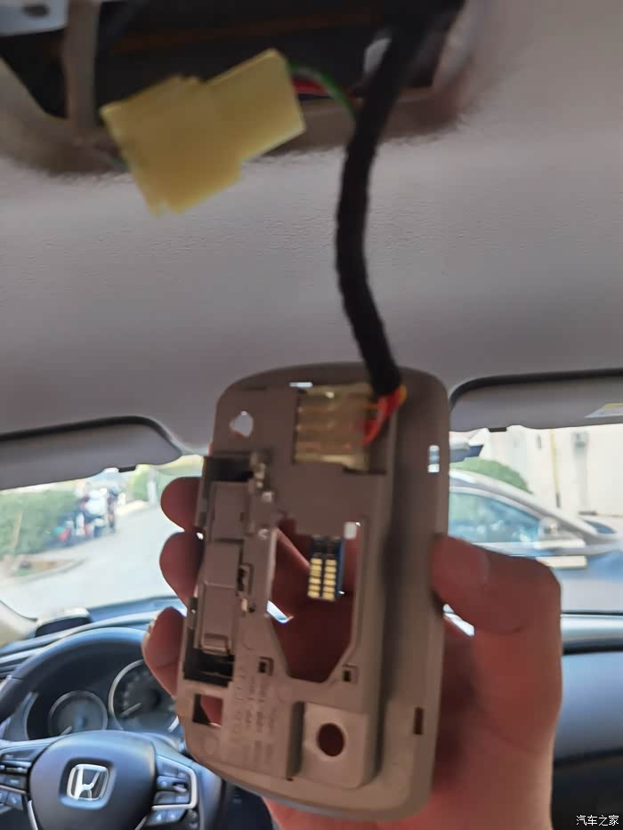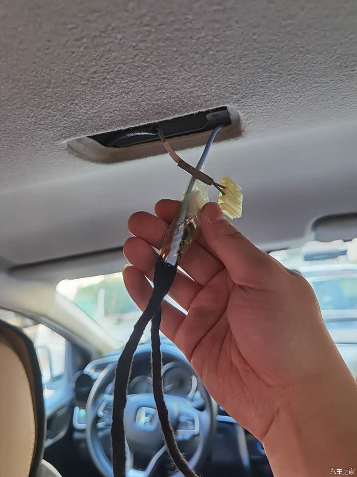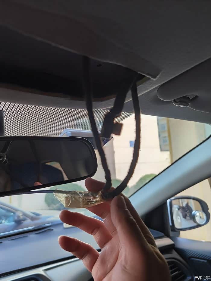 这里要穿线,从后排阅读灯往前面穿,我搞了根铁丝,很容易就穿过来了。