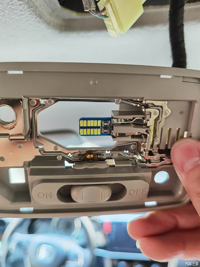 后排阅读灯也是直接对插,送了三个LED灯泡,顺手给换了。