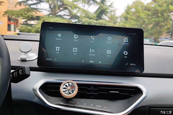 中控的设计非常简洁,不过非常的实用,操作很简单,12.3英寸的中控大屏自带导航,支持联网,自驾游中娱乐性非常棒。同时车内的人机交互系统很智能,语音系统可控制空调、电话、多媒体等。另外,几何C还保留了空调使用的物理按键,非常的实用。