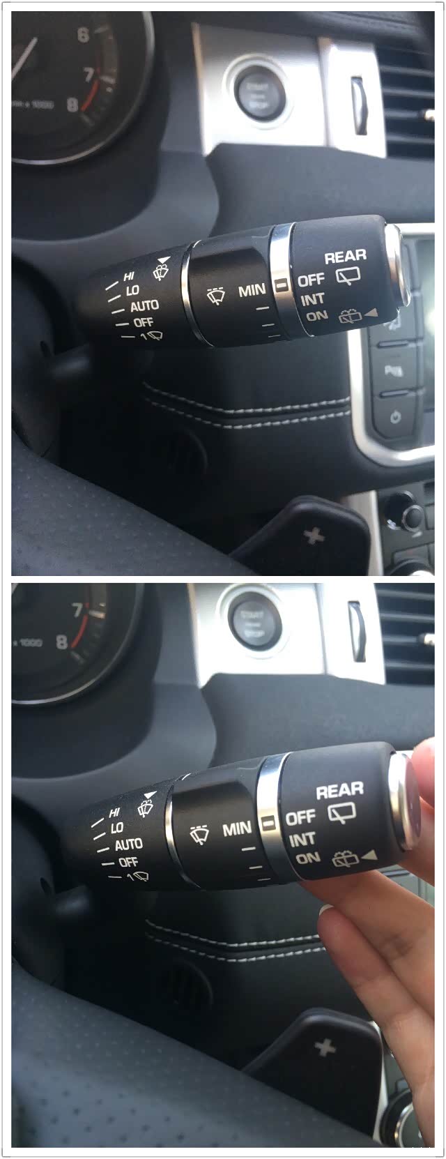 拨动控制杆两秒两大灯同时清洗,不到一秒则轮流清洗。
