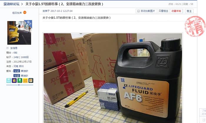 上锅是4s的银美孚,五一在郑州的东城天道做的,半年一保养,对小蒙真是够好了,五保2万公里更换的东西多,大家可以看看我五保的帖子https://club.autohome.com.cn/bbs/thre