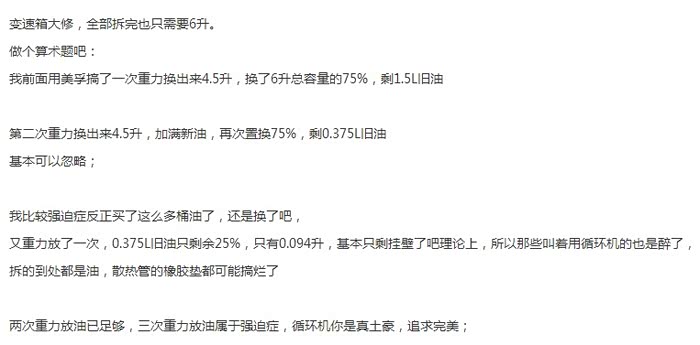 有爱车的车友,可以看我变速箱油三连放的更换帖子,循环机他们没有配套的管子,还有我2万公里大保养的帖子;