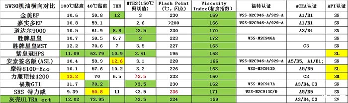 自己和车友一起整理的福特常用5w30机油参数表,供大家参考