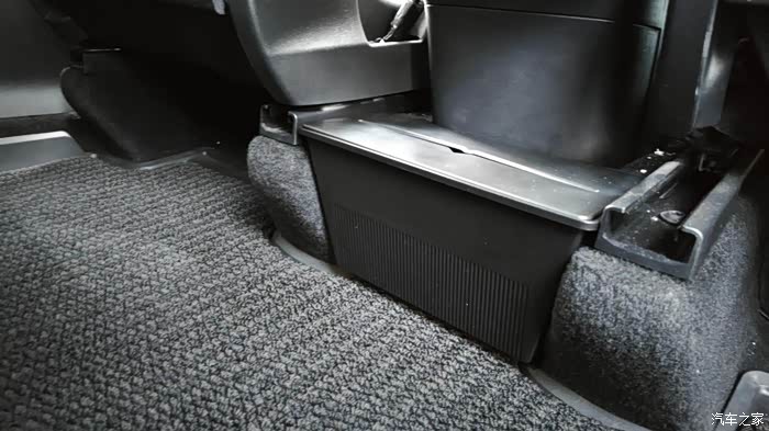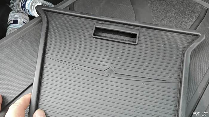 ▲座椅下方收纳盒,也是TPE材质,放放湿漉漉的雨伞挺不错的,卡得比较紧,不至于紧急刹车会掉出来。