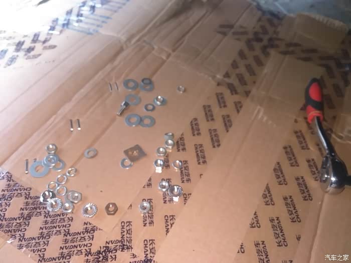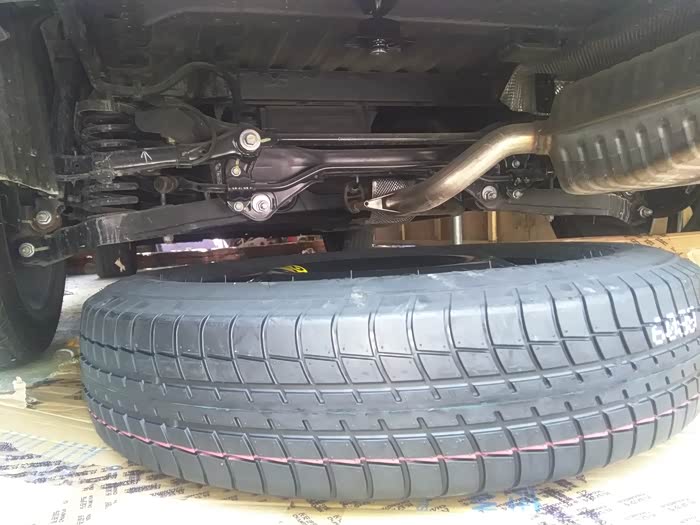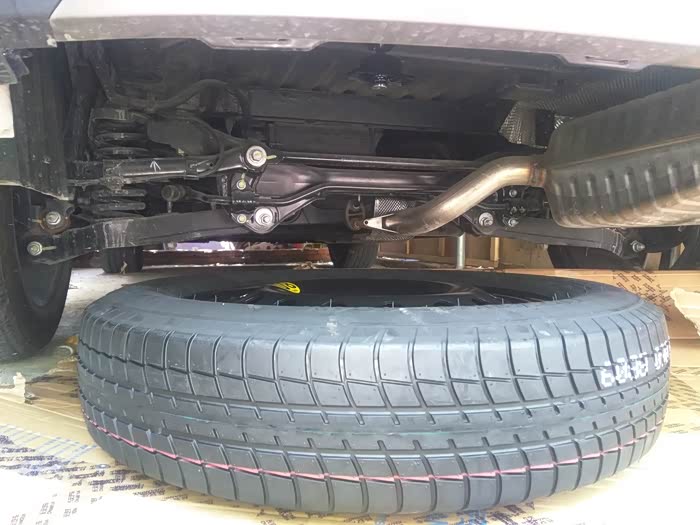 看旗舰版的时候备胎是放底盘下面的,等我订太空包回来才发现备胎在里面,有味道还占空间,一直想改但一直找不到配件也订不到,直到前几天在马云那问了一下在重庆卖长安汽车配件的一个网店,他说有可以去厂家那拿到货,就是有点贵