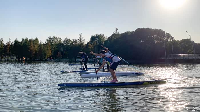 为了保证活动的安全与趣味,主办方精心准备了划浆板设备,并安排了专业教练为每一位参与者提供指导。大家在教练的指导下,首先进行了一些基础的划浆板技巧训练,学习如何平衡、如何控制方向,以及如何在水面上保持稳定。对于大多数人来说,这是一次全新的体验,初次尝试的车主们脸上洋溢着期待与兴奋。