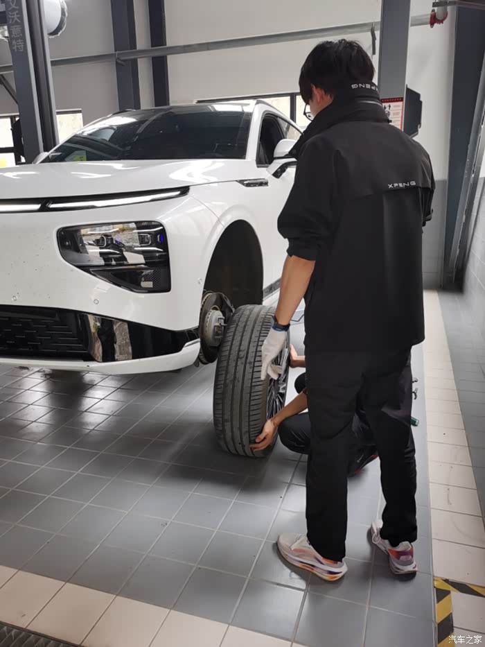 售后这里给我的车辆做了一系列的检测,包括前后换胎、动平衡,并且都是免费的,但是补胎这里还不能完成,只能出去补胎,希望小鹏早点开通这个功能。