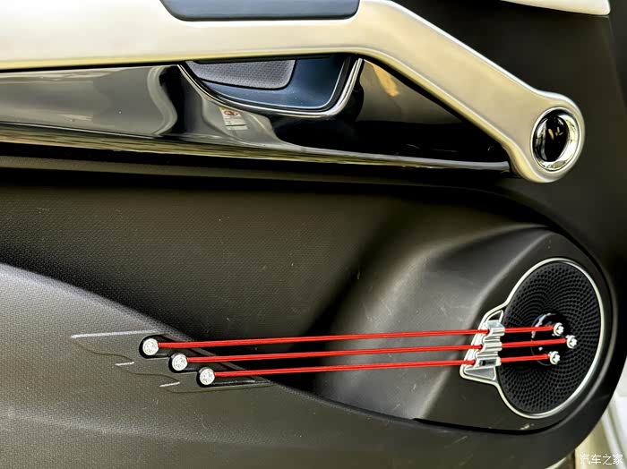 车子内部空间也不错,座椅填充也很厚实,软硬度合适。就是不知道门上面的红绳是干什么用的