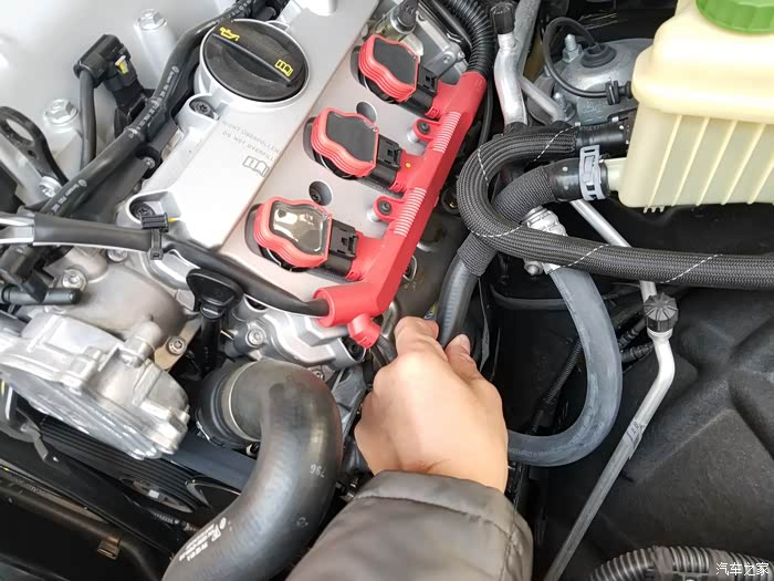 很多人反映途锐怠速或者稍加一点油门情况下,发动机舱嗡嗡声响很大,我也猜想是机械增压器的声音,但是不敢十分确定。今天到4S店比较了三辆车,有拓界(旧车)、驭岳(试驾车)、远征版(新车),全部都是一样的声音,技师说是方向助力泵的声音,并且把照片这个管子(通助力泵)捏住,声音更大了。