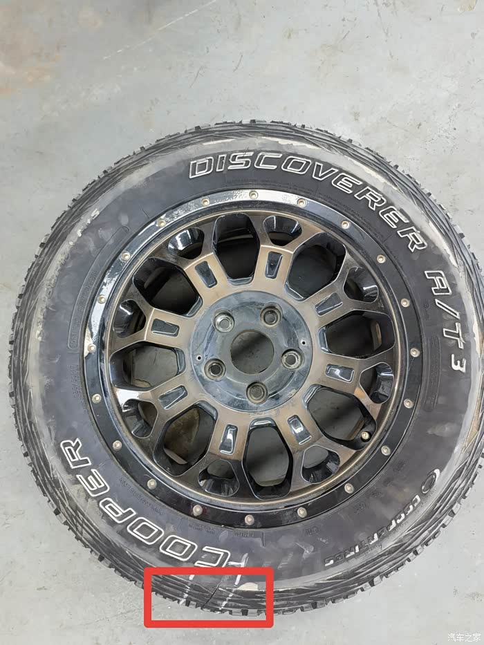 2017款迈特威探索版原配轮毂、轮胎,德国马牌,轮胎尺寸235/55/R17,轮胎直径690.3mm。2018年底升级固铂AT3时,这条马牌城市轮胎只行驶了3万公里,但是轮胎花纹已经磨损严重。