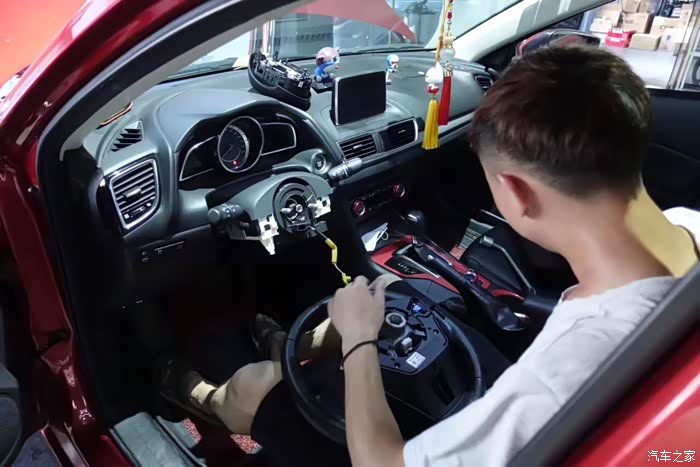 弄到这已经有点晚了,因为还要急着回上海,所以掌柜亲自上阵了,师傅们在弄大灯,掌柜亲自帮装方向盘。听他说他拆方向盘的速度比4S店师傅的速度还要快,也不知道是不是骗人的