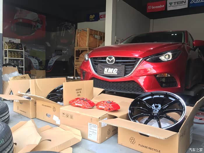 跟我同一天还有另外一个本地车友过来换轮毂改卡钳,