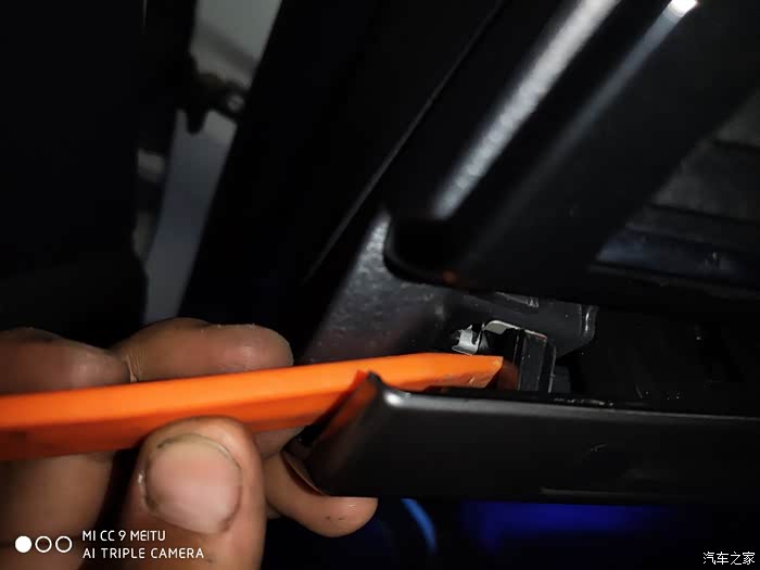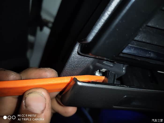 这个是中控的长饰条拆解方法。很多车友说不好撬。撬这个位置。最边上的位置