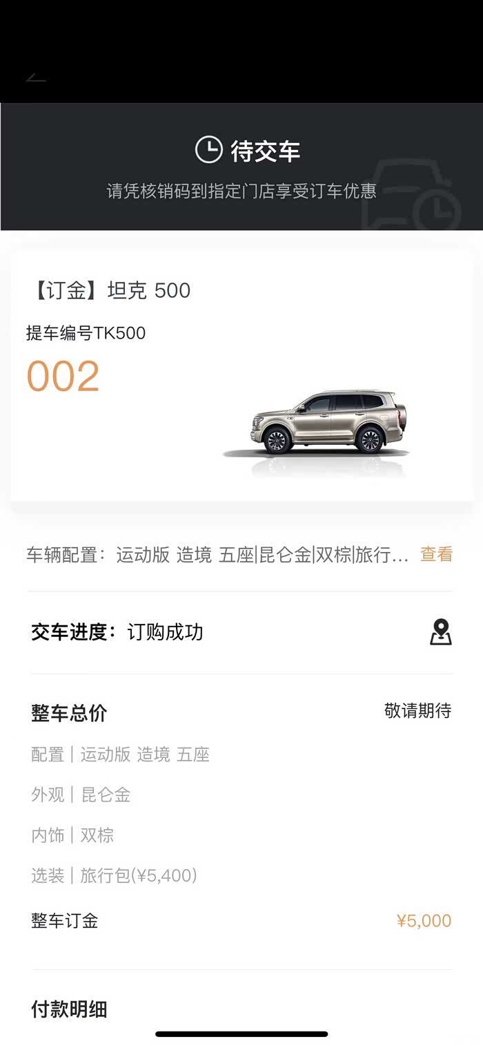 另外,本次试驾车型是坦克500商务造境版试装车,并不代表最终量产车型。