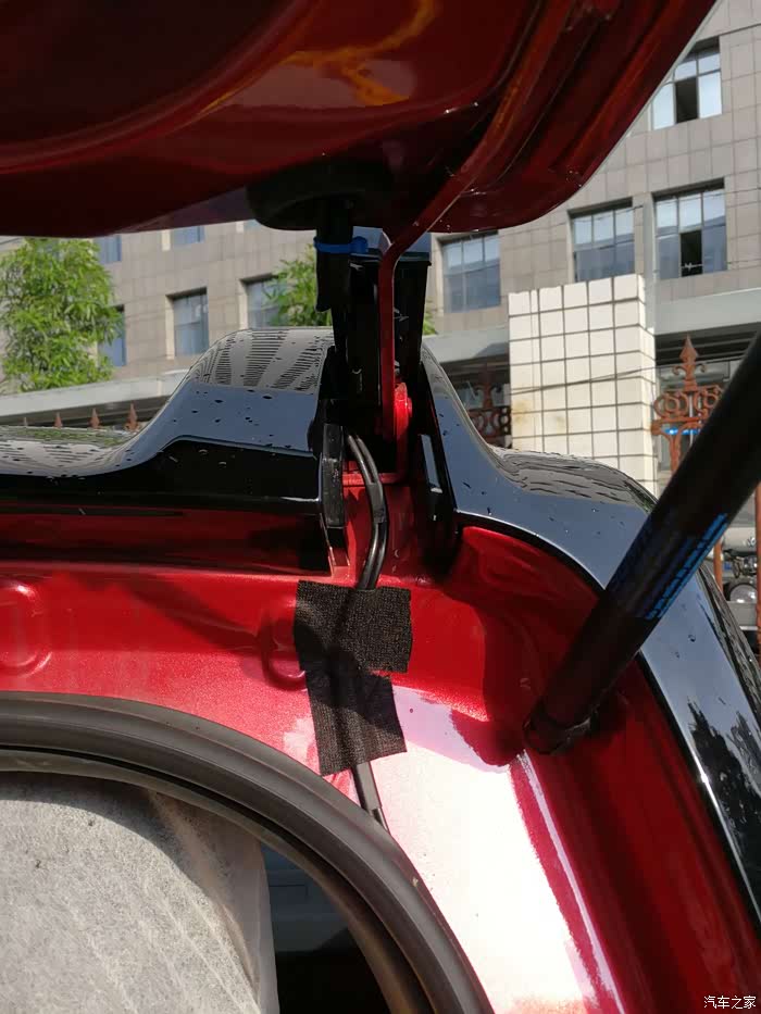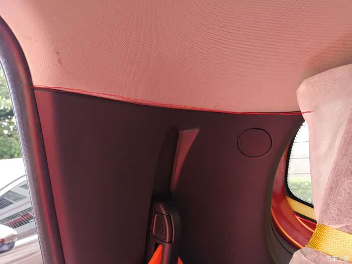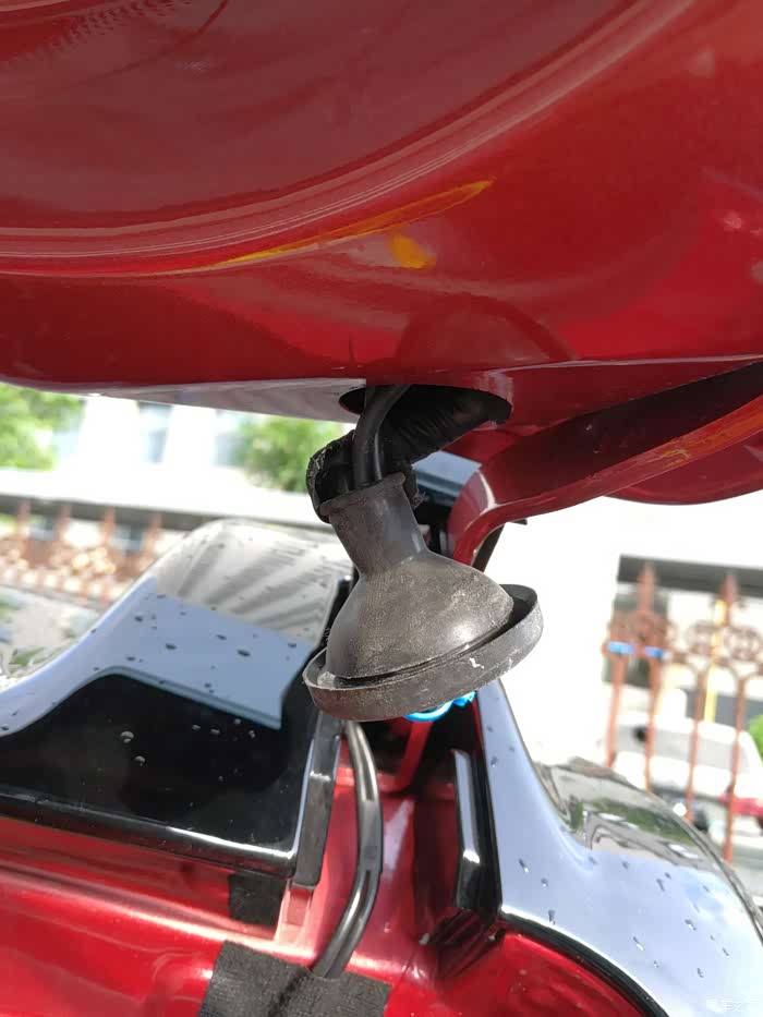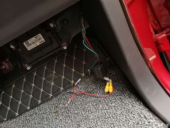 出来后,从这里上后门板。一条是AV线,一条是从尾灯上来的信号线(也是正极)。线走上面的目的是为了方便走上后门板。