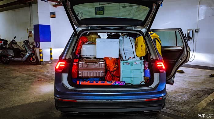 考虑到春节期间可能在外面吃饭是个大问题,而且为了安全起见,所以妈妈爸爸在家准备了许多的卤菜、腊肉香肠和其他方便携带的菜品,并且还购置了便携电饭煲和高压锅,加上米面油佐料等,目的就是为了尽量不在旅途中在外吃饭,可是仅仅坚持了两天,到了广东湛江之后就放飞自我了,哈哈。前两天赶路,妈妈都是早晨就把饭煮好,烧一锅肉,午餐就在服务区解决,又节约时间和金钱,又安全,最重要还是途观L的后备箱够大,能够装完这些装备。除了食物和餐具,还有折叠椅子和桌子,行李和摄影装备等等,总算把后备箱添满了,不过后来带的东西都用了。