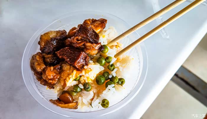 早晨出发前,妈妈把牛肉烧好,中午就在服务区解决,节约时间节约金钱,还能吃好,很棒!
