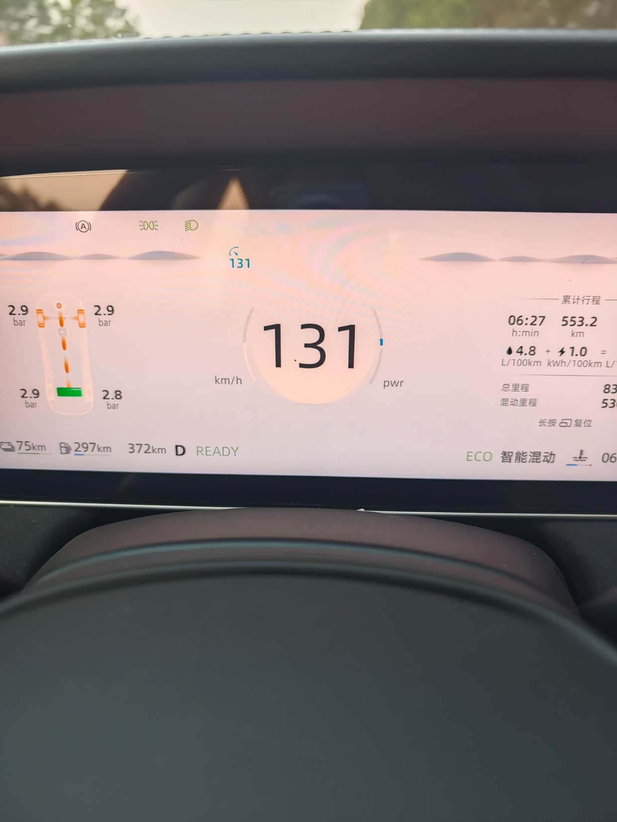 因为是临牌 ,限速100的路段,定速108巡航,限速120的路段,定速130巡航 ,综合下来,362.04(油费)+5.44(电费)=367.48元,跑了680公里(表显),剩余续航245公里。表显综合油耗5.2L/km。